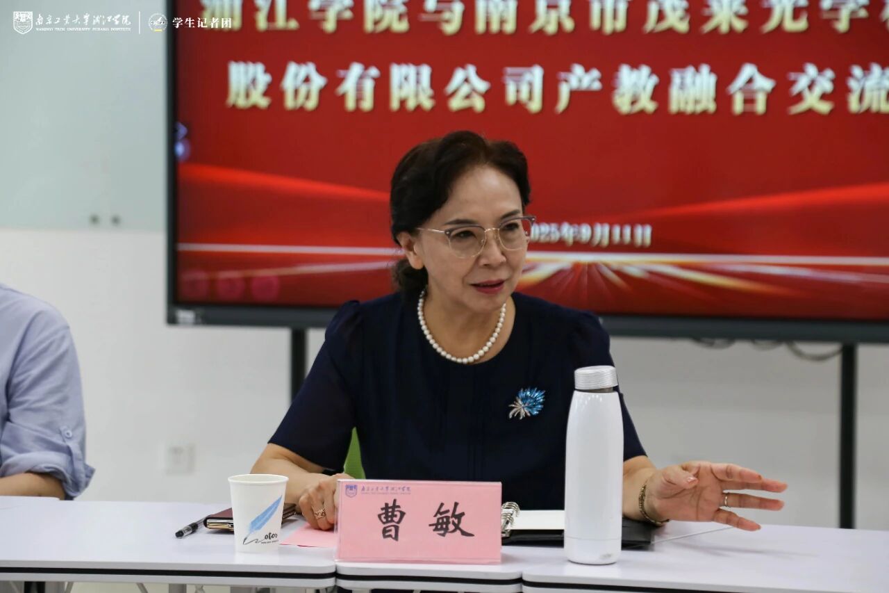 9 月 11 日下午,南京茂莱光学科技股份有限公司联合创始人兼 CEO 范一等一行前往南京工业大学浦江学院华商学研究院研讨室,与校长助理曹敏及学院相关领导就产教融合项目相关议题展开深入座谈,并就中泰文化融合、人才培养、专业与课程共建、中泰两地实训实习基地建设、中泰学生就业促进,以及茂莱员工泰语培训等多方面合作广泛交换意见,初步达成共建产教融合项目的合作意向。